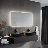 Miroir rectangulaire équipé d'un rétroéclairage tout autour de la glace. La lumière diffusée éclaire toute en douceur le mur ou est fixée le miroir sur mesure. Son design convient aux salles de bains lumineux ne nécessitant pas de luminosités supplémentaires.