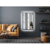 Le miroir rectangulaire sur mesure avec cadre noir rétroéclairé est idéal pour les intérieurs modernes, adapté pour la salle de bain, salon, chambre ou couloir. Le rétro-éclairage offre une luminosité agréable.