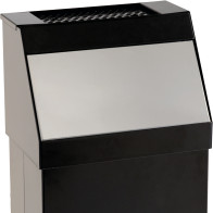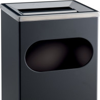 Poubelle pour restaurant, industrie et toutes zone de grand passage. En acier peint noir. La trappe basculante revient en position fermée. Pieds en plastique. Fixation murale possible. Cendrier sur le dessus.