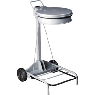 Ce modèle est équipé d'une large pédale qui permet une ouverture facile, respectant ainsi les normes HACCP. Le maintien efficace du sac est assuré par une ceinture élastique, éliminant tout risque de glissement. Les déplacements sont facilités grâce à deux roues solides en plastique rigide de 150 mm de diamètre, tandis que l'assemblage rapide du support offre un gain de temps appréciable.