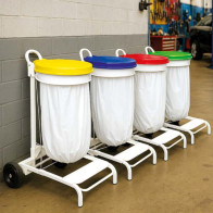 Support de sac mobile 90L en acier blanc : robuste et pratique pour un tri efficace en cuisine professionnelle.