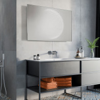 Le miroir rectangulaire avec ellipse LED effet 3D est un produit haut de gamme et innovant qui combine esthétique et fonctionnalité. Le cadre en aluminium brossé confère une touche élégante à ce miroir sur mesure, disponible en dimensions allant jusqu'à 180 x 180 cm.