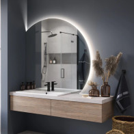 Ce miroir rond coupé verticalement offre une touche d'élégance et de fonctionnalité à toute salle de bain. Conçu pour être installé au-dessus du lavabo, il est disponible dans une gamme de tailles allant de Ø40 cm à Ø170 cm. Sa coupe ajustable à droite ou à gauche permet une personnalisation selon l'espace et les préférences.