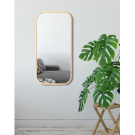 Le miroir mira natural est un miroir rectangulaire de haute qualité, doté d'un cadre aspect bois. Ses coins du cadre arrondis lui confèrent une esthétique douce et moderne. Le cadre en bois est résistant à l'humidité, ce qui le rend idéal pour une utilisation dans la salle de bains, le salon, la chambre ou le hall d'entrée.