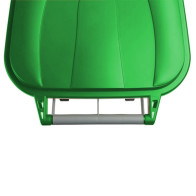 - Poubelle mobile sur roulettes blanches avec couvercle vert.