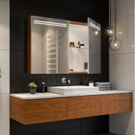 Découvrez notre Armoire à miroir LED sur mesure, une solution innovante pour votre salle de bain. Elle combine deux éléments essentiels : un miroir sur lavabo et une armoire à LED.