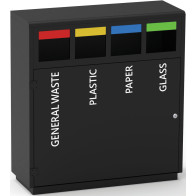 Conçue pour faciliter le tri des déchets, cette poubelle de tri sélectif noire est un choix idéal pour les environnements professionnels et les espaces publics. La structure robuste en acier poudré époxy noir garantit une durabilité et une élégance adaptées aux usages intenses. Son utilisation est optimisée par une porte frontale verrouillable avec une serrure à clef triangulaire, assurant la sécurité et la propreté.