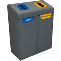 Pour une identification claire, personnalisez la corbeille avec des pictogrammes adhésifs correspondant aux déchets: "autres déchets," "plastique," "papier," "verre," "compostable," "recyclable," "non recyclable". Disponible en divers coloris, elle encourage le tri sélectif efficace et la création d’îlots grâce aux clips de connexion en option. Un modèle réduit de 42 litres est également disponible pour s'adapter à différents besoins.