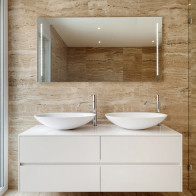Les lignes simples et l'éclairage en bandes LED font du miroir Dolium un standard harmonieux. Ce miroir conviendra aux adeptes des formes brutes et fonctionnelles.