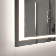 Miroir rectangulaire équipé d'un rétroéclairage tout autour de la glace. La lumière diffusée éclaire toute en douceur le mur ou est fixée le miroir sur mesure. Son design convient aux salles de bains lumineux ne nécessitant pas de luminosités supplémentaires.