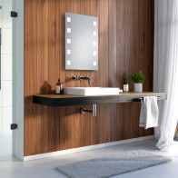 Configurez votre miroir grâce aux dimensions disponibles de 40 x 40 cm à 180 x 180 cm. Vous pouvez aussi ajouter une horloge et un miroir rond grossissant ainsi qu'une prise rasoir.