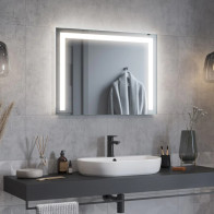 Ce miroir rectangulaire est équipé d'une triple bande LED en haut du miroir. L'aspect de ce miroir apporte un aspect agréable à votre espace de vie tout en simplicité. il convient pour toutes les salles de bains modernes.