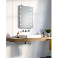 Ce miroir rectangulaire est équipé de 2 bandes LED points ronds verticales de chaque côté du miroir. l'aspect de ce miroir apporte un aspect moderne à votre espace de vie. il convient pour toutes les salles de bains modernes.