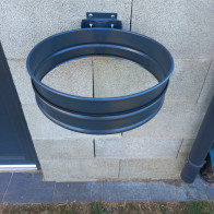 Couronne support sacs-poubelle ronde murale à couvercle. Le diamètre de la couronne permet la pose de sacs-poubelle de 70 à 130 litres. La fermeture du couvercle est silencieuse et douce.