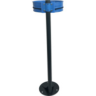 Cette poubelle peut être posée ou fixée au sol grâce à ses 3 points d'ancrage de Ø16mm sur un socle de Ø280mm. Elle dispose d'une ouverture de 310mm sur le côté, permettant une extraction facile des sacs-poubelle. Son éteignoir en inox, conforme à la classe M0, est équipé du logo découpé dans la matière.